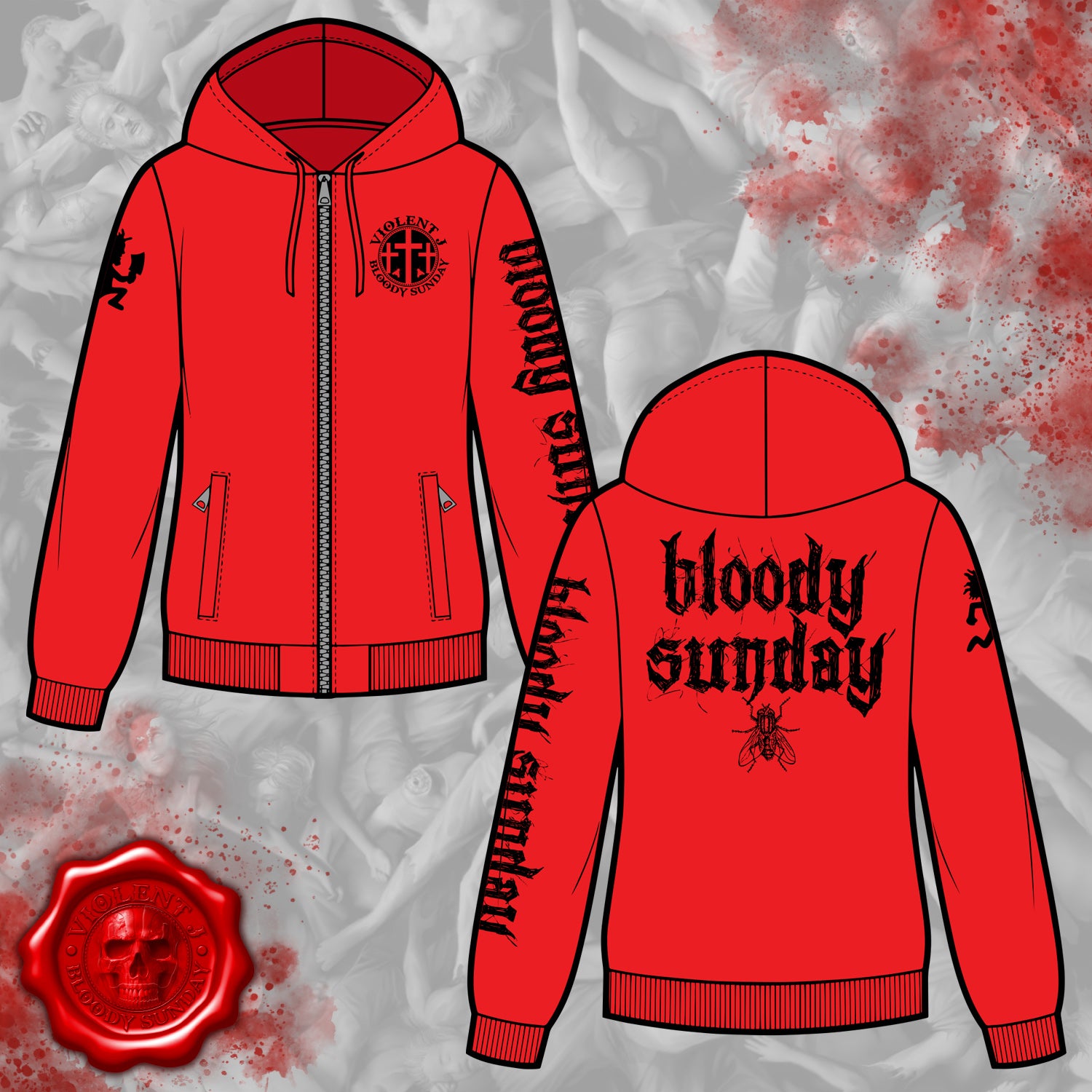 VJ Red Bloody Sunday Zip Up Hoodie